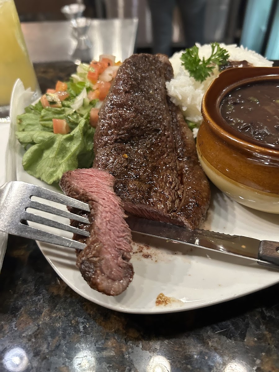 One of the cooks shared a quick behind-the-scenes detail during a slower afternoon visit. They marinate the beef with coarse sea salt only, a classic churrasco method designed to draw moisture to the surface and lock in juices once it hits the flame. That simple process is supported by research from the Culinary Institute of America, which explains that dry seasoning on meat improves crust formation without masking natural flavor. You taste that science in every bite, especially in their top sirloin, which stays tender even when sliced thin tableside.